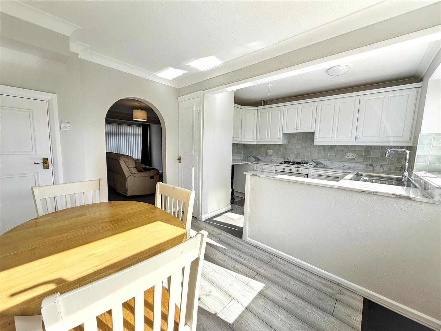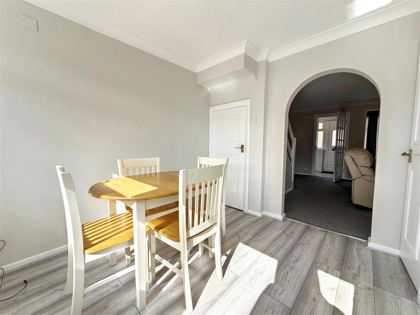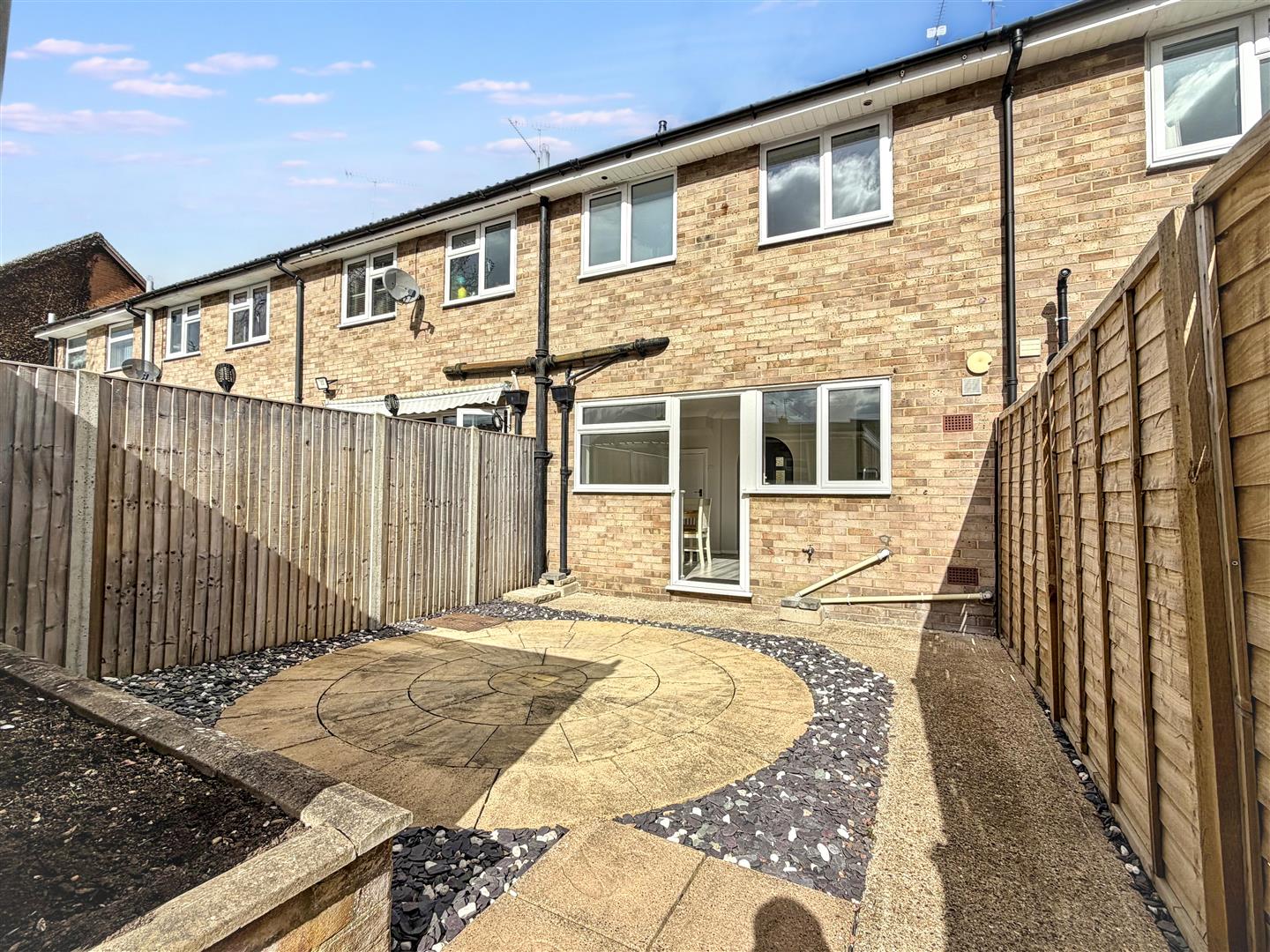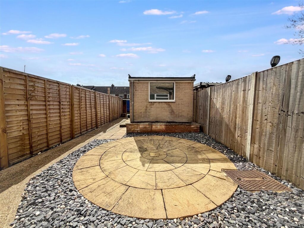Three bedroom mid terrace home, presented in good order with a garage, set in a quiet cul-de-sac on the edge of the village. EPC: C