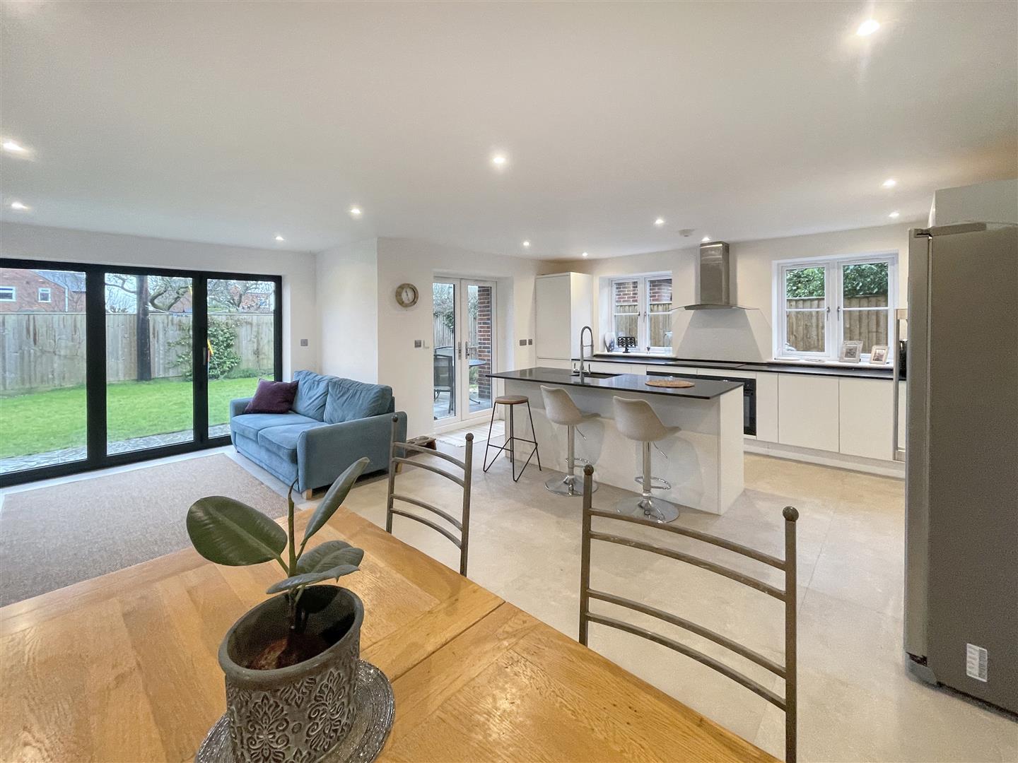 - 21ft x 21ft fitted kitchen/ breakfast room/ living room with bi fold doors to the rear